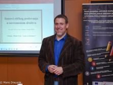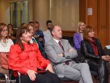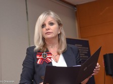 Potom se obratila dr.sc. Davorka Budimir, predsjednica Transparency Internationala Hrvatska, zamjenica predsjednice Komisije izbora kandidata za Nagradu Nikola Tesla za etično poslovanje koja se prisjetila svih okolnosti istraživanja kandidata i posebnog značaja isticanja tako pozitivnih kvaliteta i njihovog promoviranja u javnosti.
